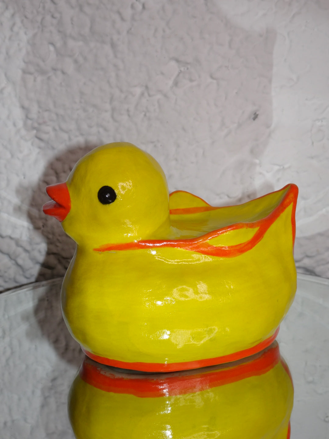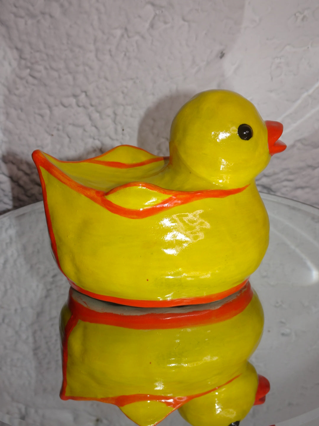 Hand built yellow ceramic ducky figurine. Their name is Lucky as they are so Lucky to meet you!