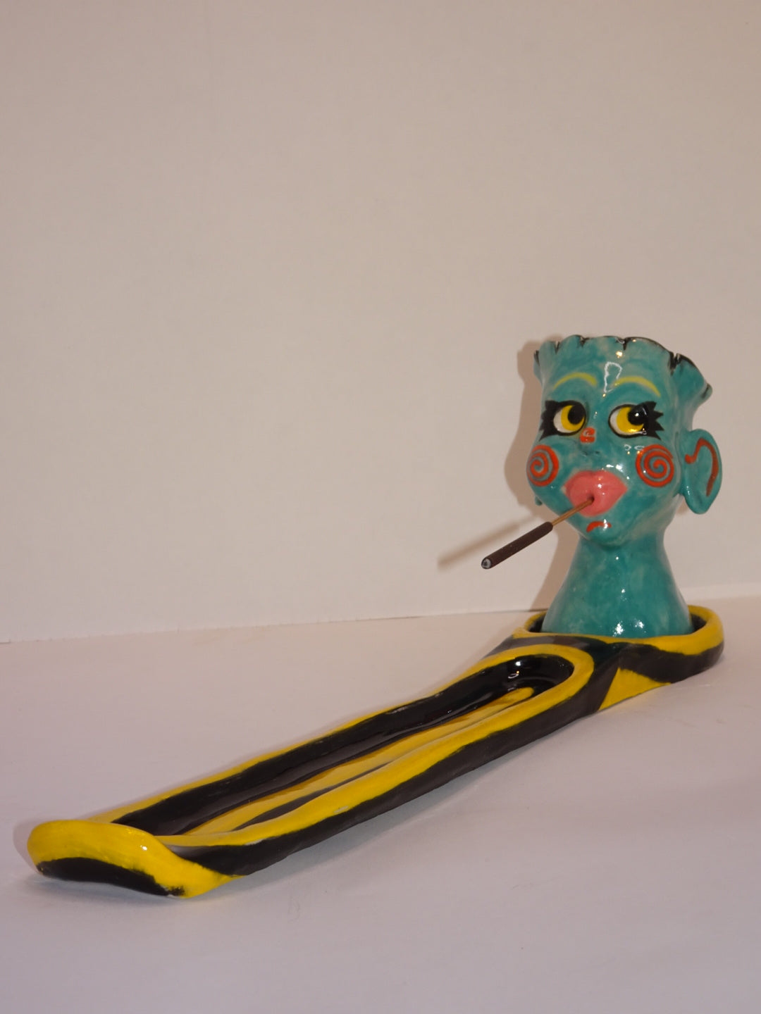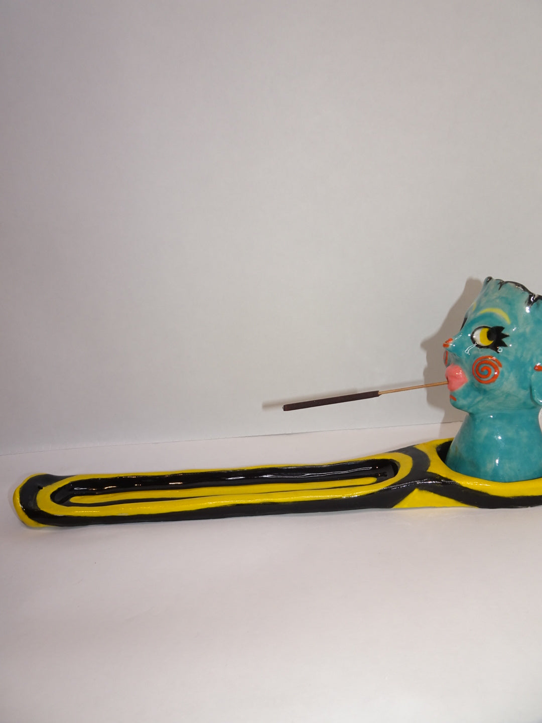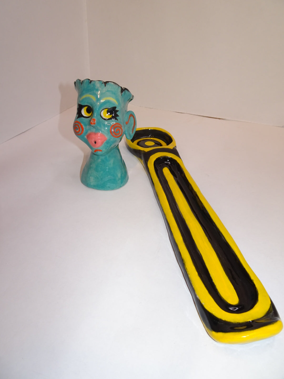 Handmade pothead incense holder with 2 separate pieces and 2 options for holding your incense sticks