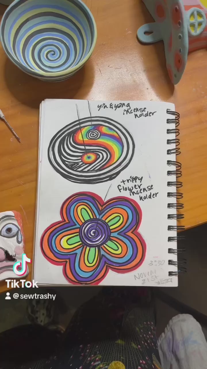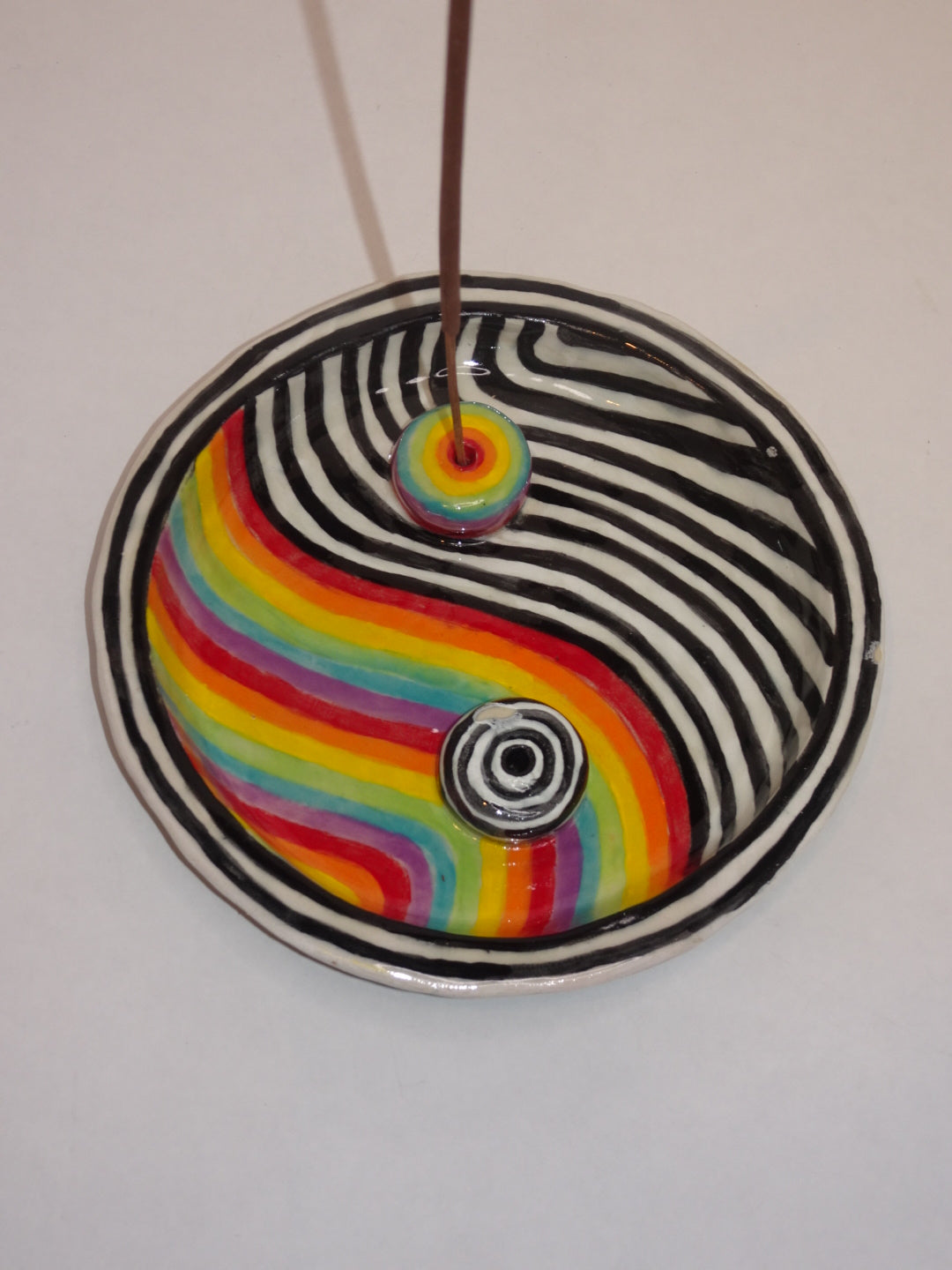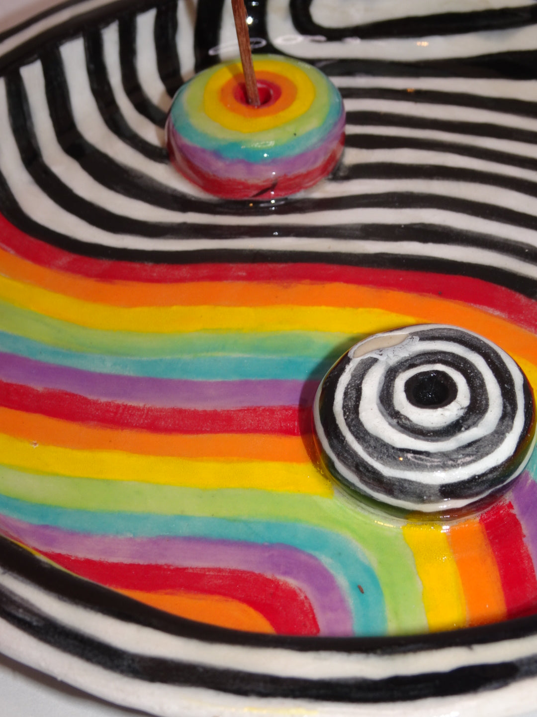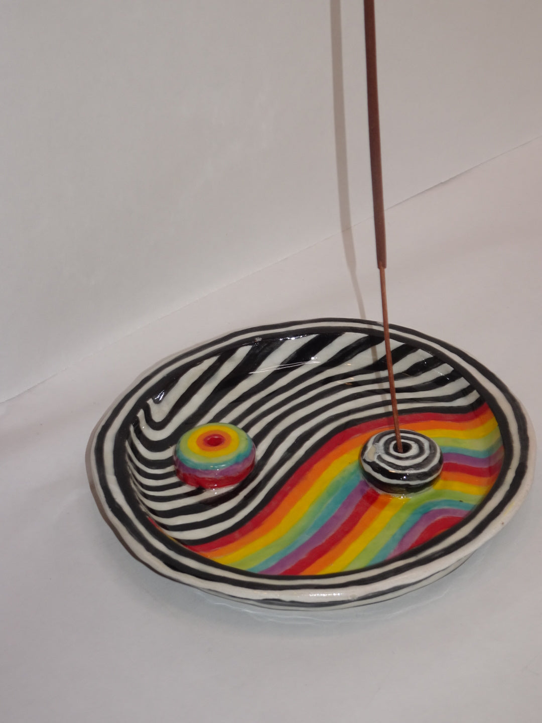 Handmade and hand painted ceramic incense holder. Can hold two incense sticks